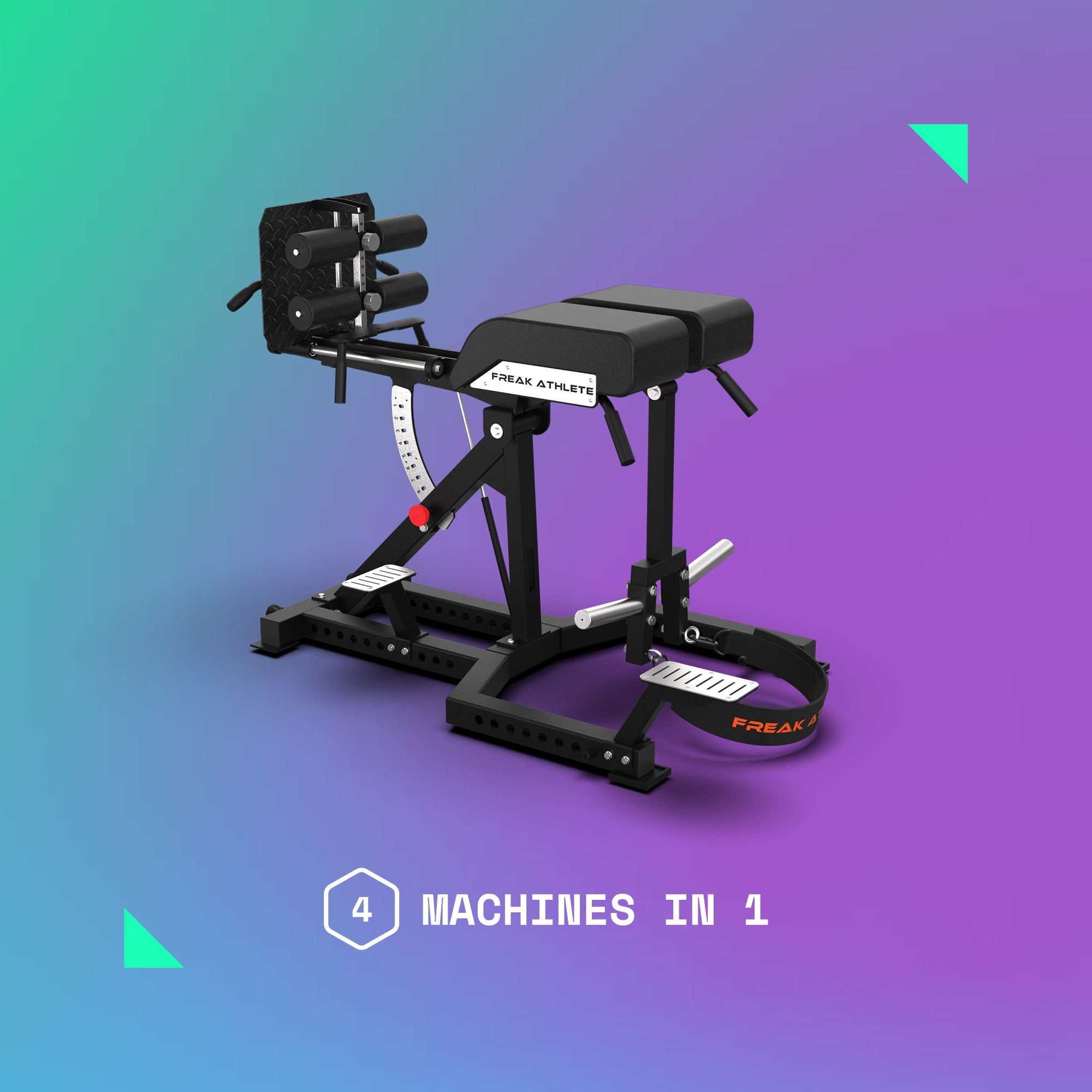 The ultimate, commercial grade machine for posterior chain training. 4 machines in 1: GHD, Back Extension, Hyperextension, and Nordic Bench.